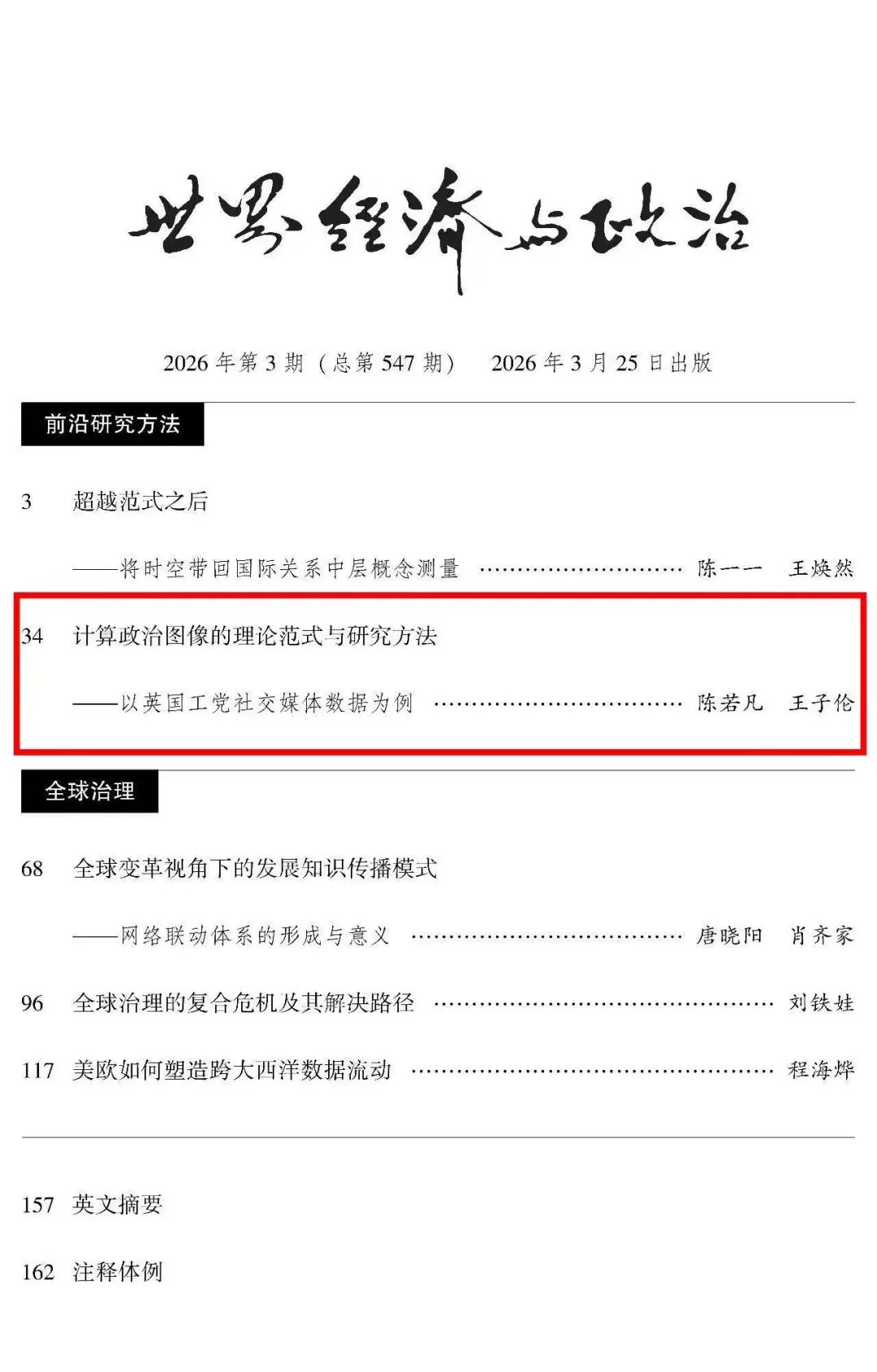 我院博士生陈若凡以第一作者身份在权威期刊《世界经济与政治》2026年第3期发表学术论文,该成果的发表充分展现了我院研究生扎实的学术功底与科研创新能力,是学院着力提升学生学术水平、强化学术人才培养的重要体现。